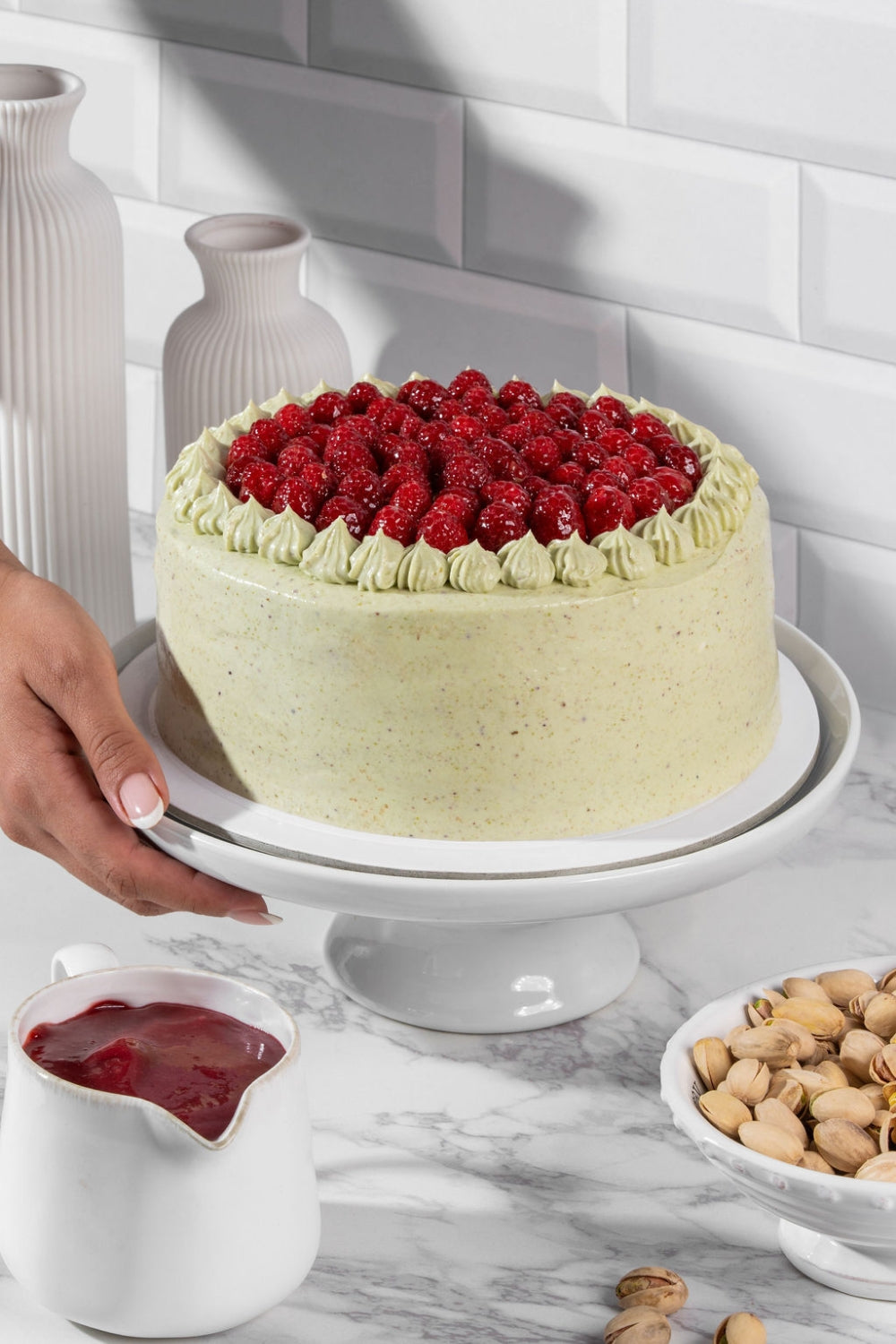 TORTA DE PISTACHOS Y FRAMBUESAS