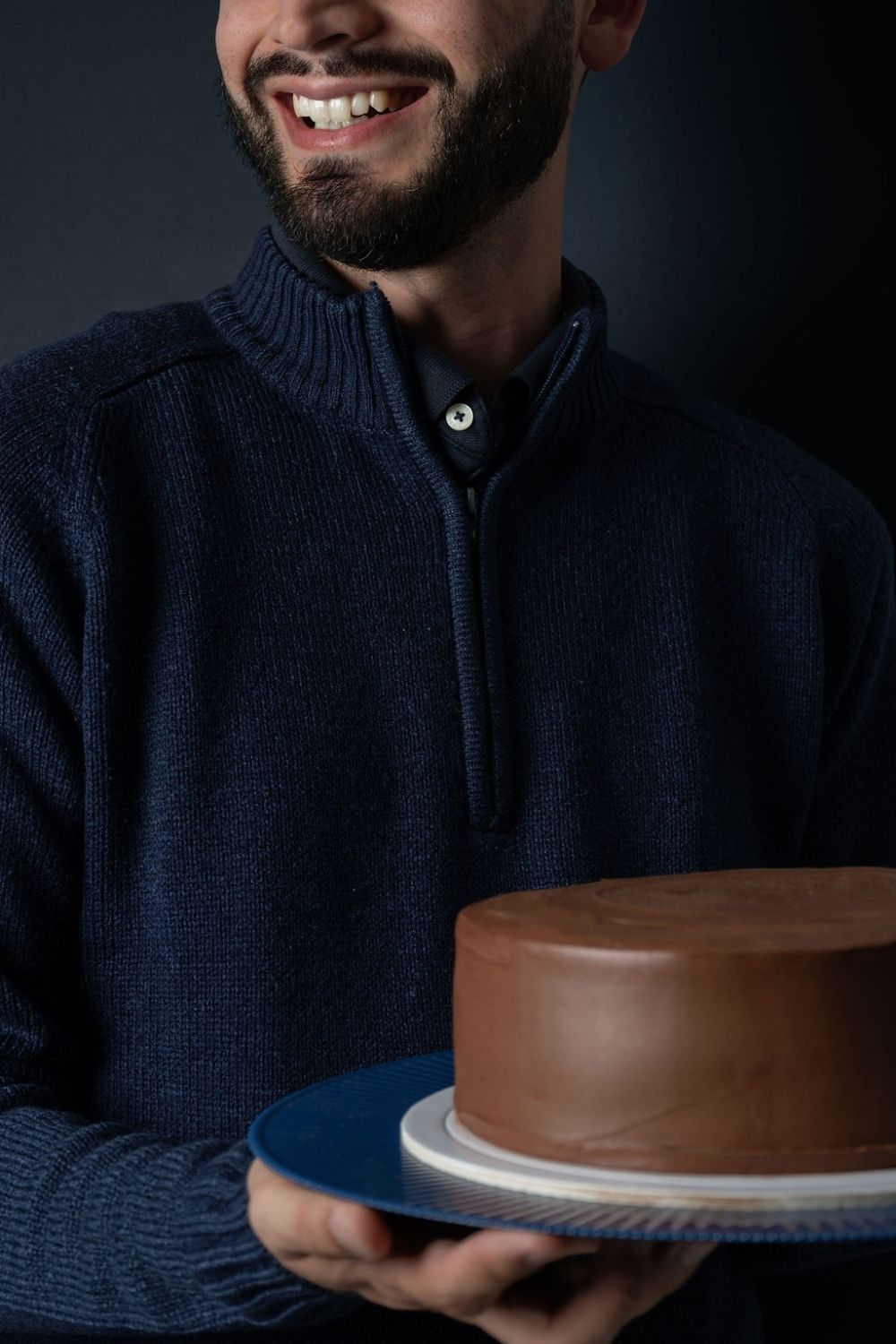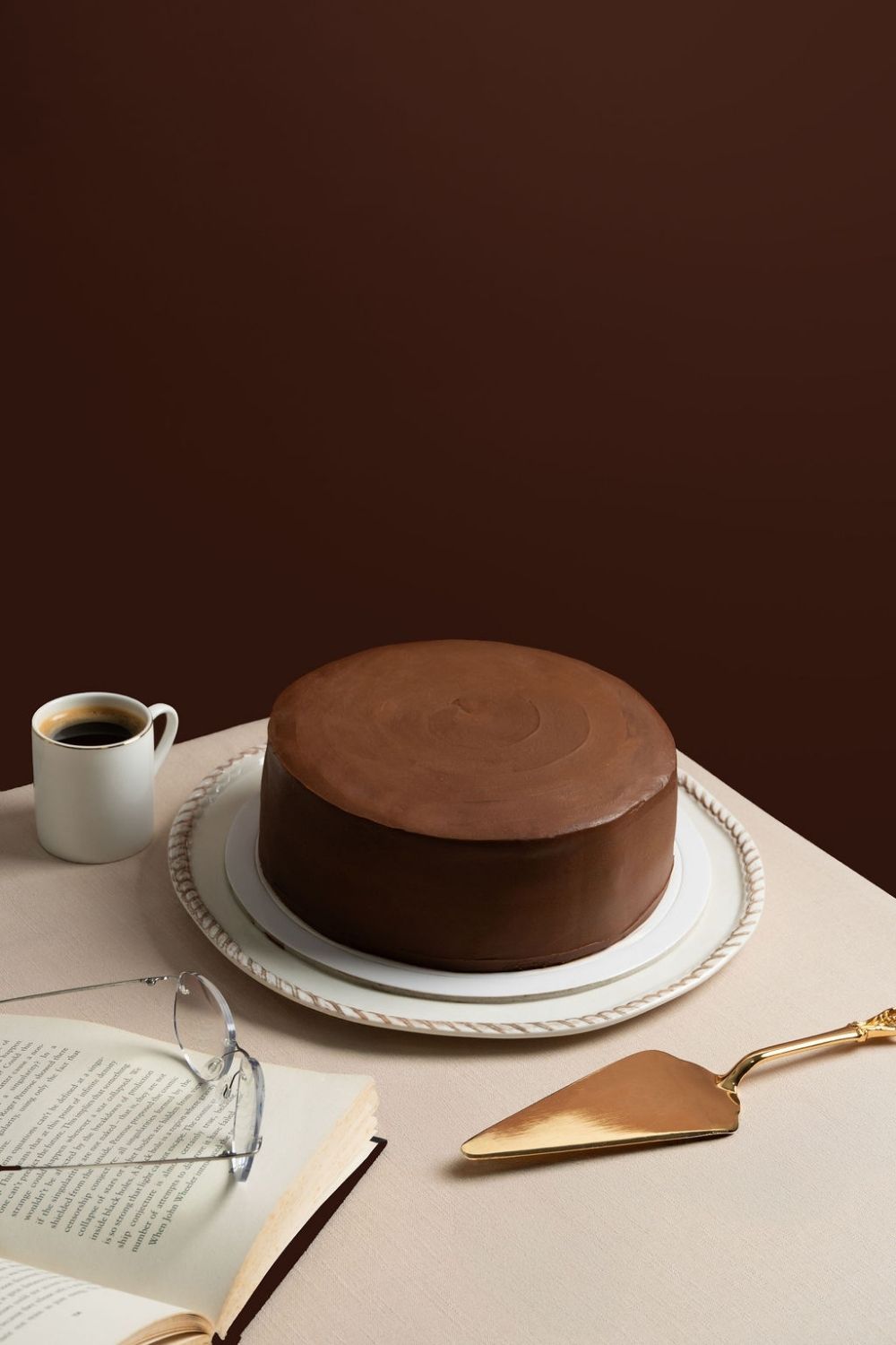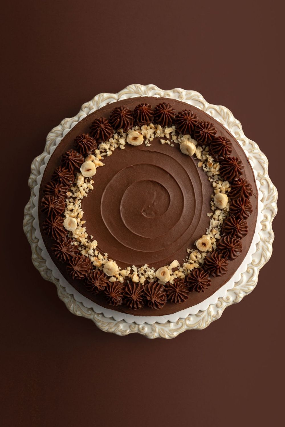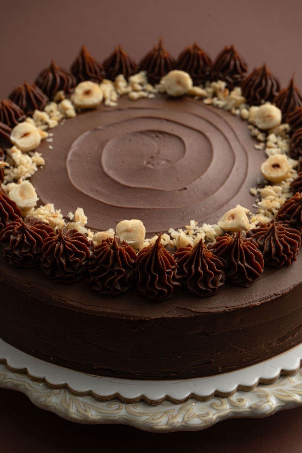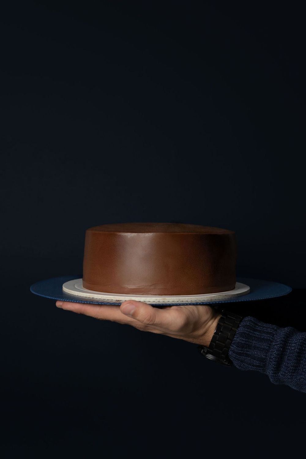 Una torta de chocolate sobre un parante.