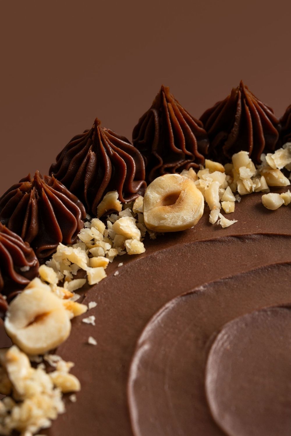 Una torta trufada de cacao sobre un parante.